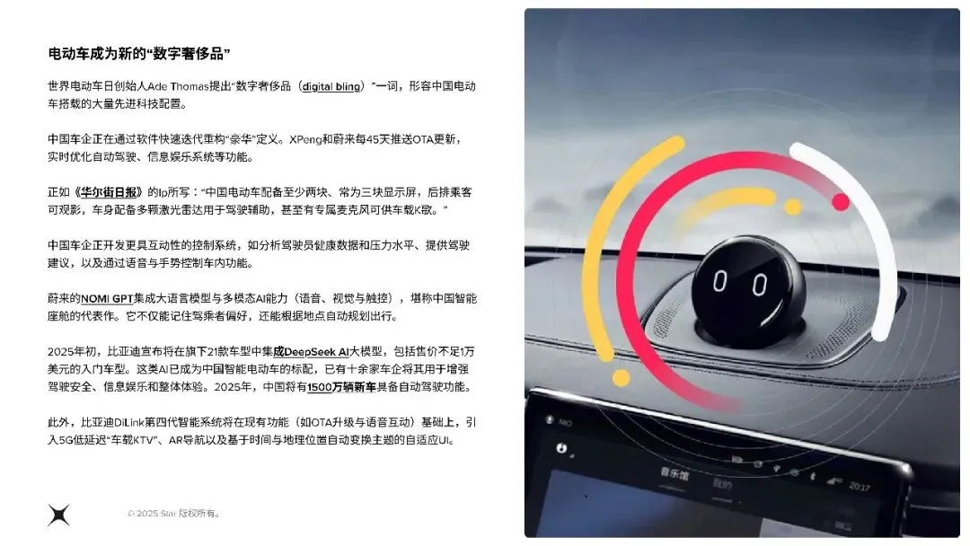 更令人意外的是,中国车企在软件研发上的速度。以前我们总觉得,买车就是买个硬件,软件嘛,能用就行。但现在不同了,小鹏、蔚来这些新势力,每隔45天就能给车主推送一次系统升级,让你的车越开越新,功能越来越多。相比之下,传统车企给车机更新一次系统,可能要等上一年半载。这种"软件定义汽车"的思维,正在重新定义什么叫做"好车"。