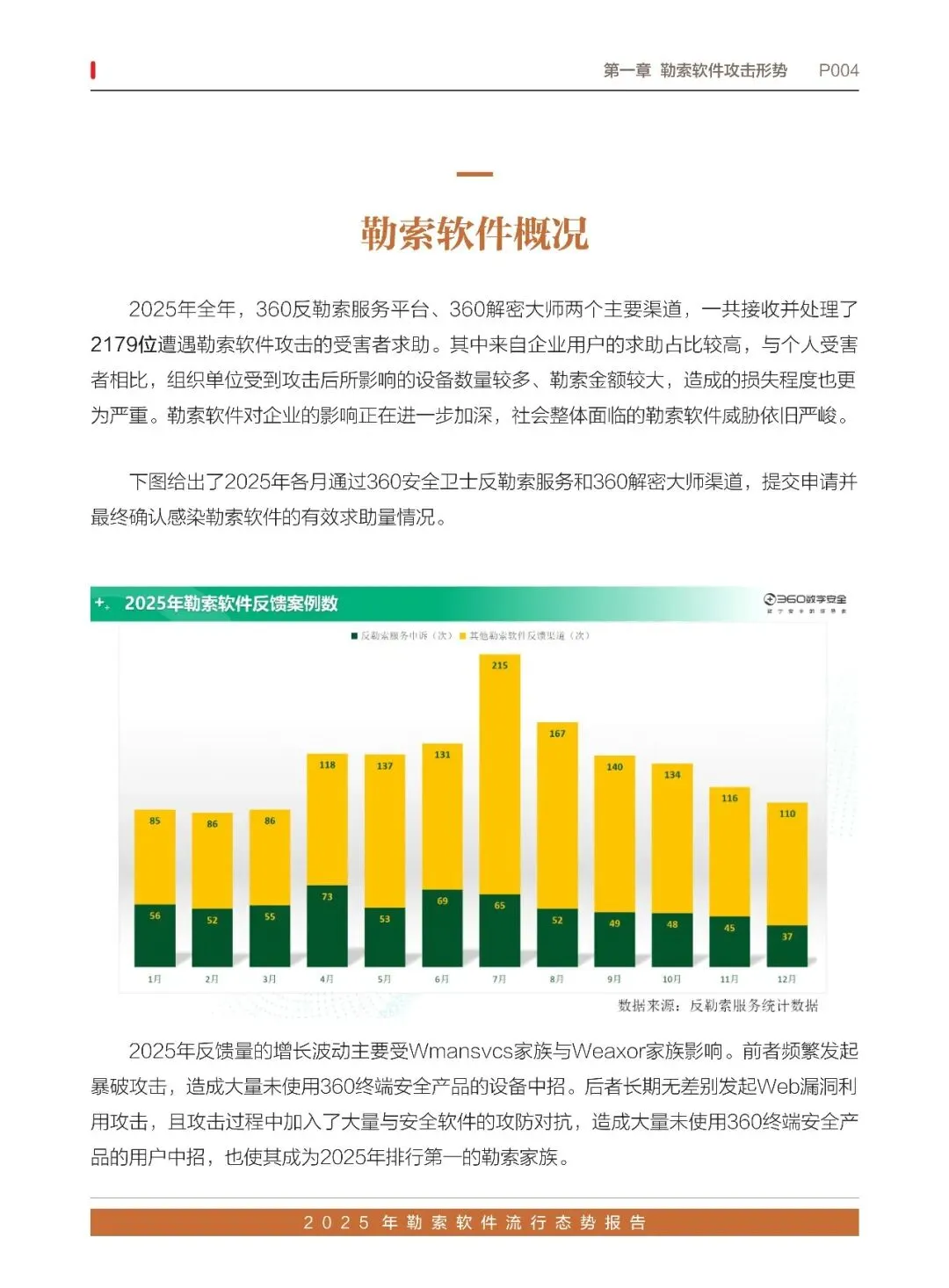 2025年,360反勒索服务平台共处理2179起勒索软件攻击求助案例。从反馈情况来看,国内勒索软件整体的攻击态势与往年类似,安全形势依然严峻。