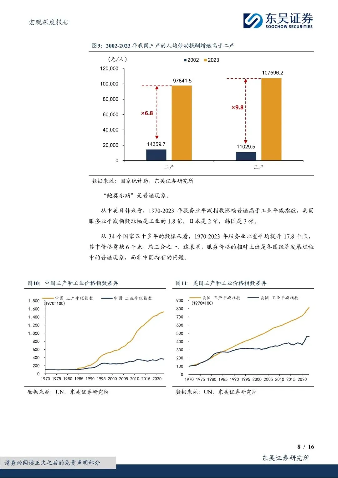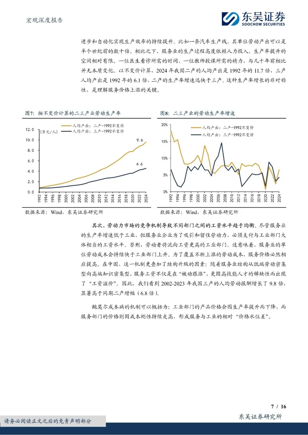 (1)经济转型的三个现象:一是工业实际增速长期高于服务业,但工业名义比重却大幅下降;二是"服务CPI-PPI"的增速差与服务业比重的变动呈现高度正相关;三是在1992-2024年服务业比重提是升的21个百分点中,价格因素贡献了14.7个百分点(占比70%),而数量因素仅贡献6.3个百分点。