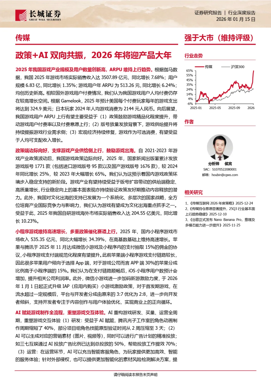 传媒行业深度报告:政策+AI双向共振,2026年将迎产品大年-长城证券