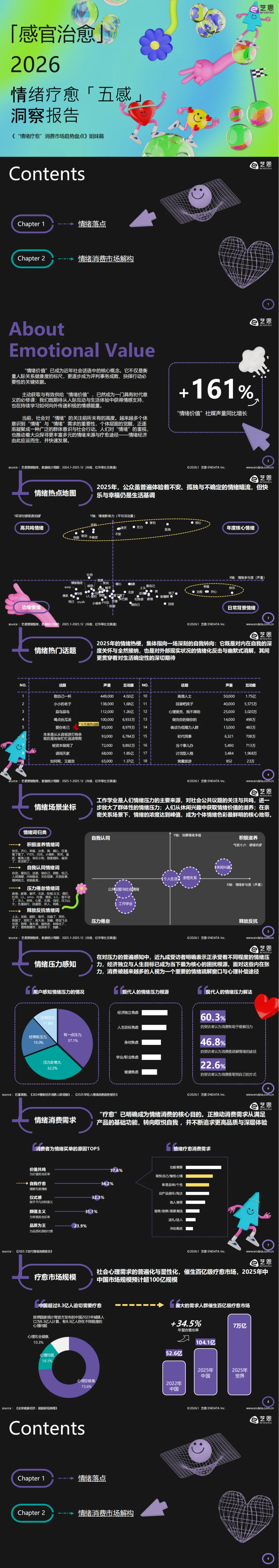 当下,“情绪价值” 成为社会核心概念,社媒声量同比增长 161%,情绪经济应运而生并快速发展。2025 年公众虽受不安、孤独等情绪困扰,但快乐与幸福仍是生活基调,“敬自己一杯”“爱自己” 等热门话题彰显着自我关怀的趋势。近九成受访者承受情绪压力,经济独立与人生目标焦虑是主要根源,超六成受访者认为消费可缓解压力,疗愈成为情绪消费核心目的,催生了超百亿规模的中国疗愈市场,2025 年市场规模预计超 100 亿,年复合增长率达 34.5%。