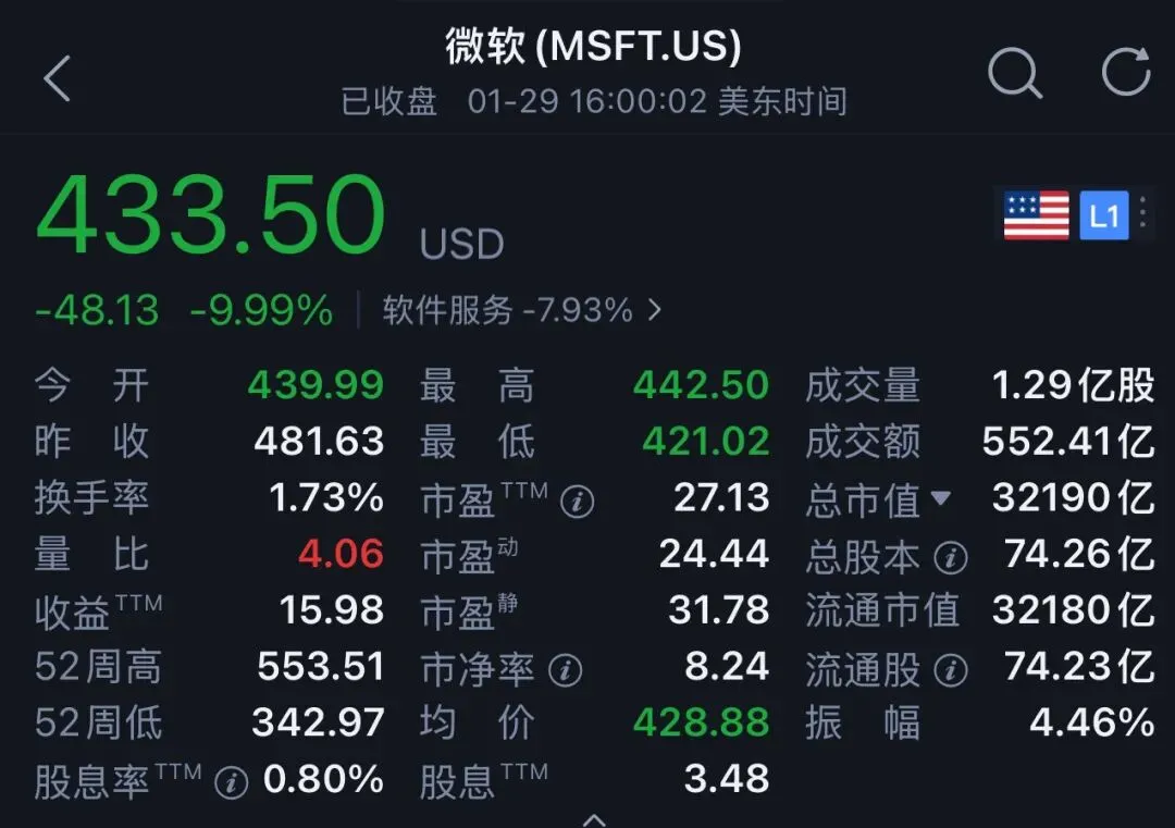 一、2026年1月29日,科技巨头微软上演了资本市场的“冰火两重天”: