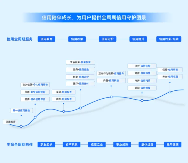 二是“服务闭环”,信用服务将贯穿人生全周期,从18岁后生成一份信用报告,持续覆盖求职、租房、购车购房、消费、信贷、保险、医疗等关键生活场景,信用服务嵌入个人发展轨迹,让“信用陪伴成长”。