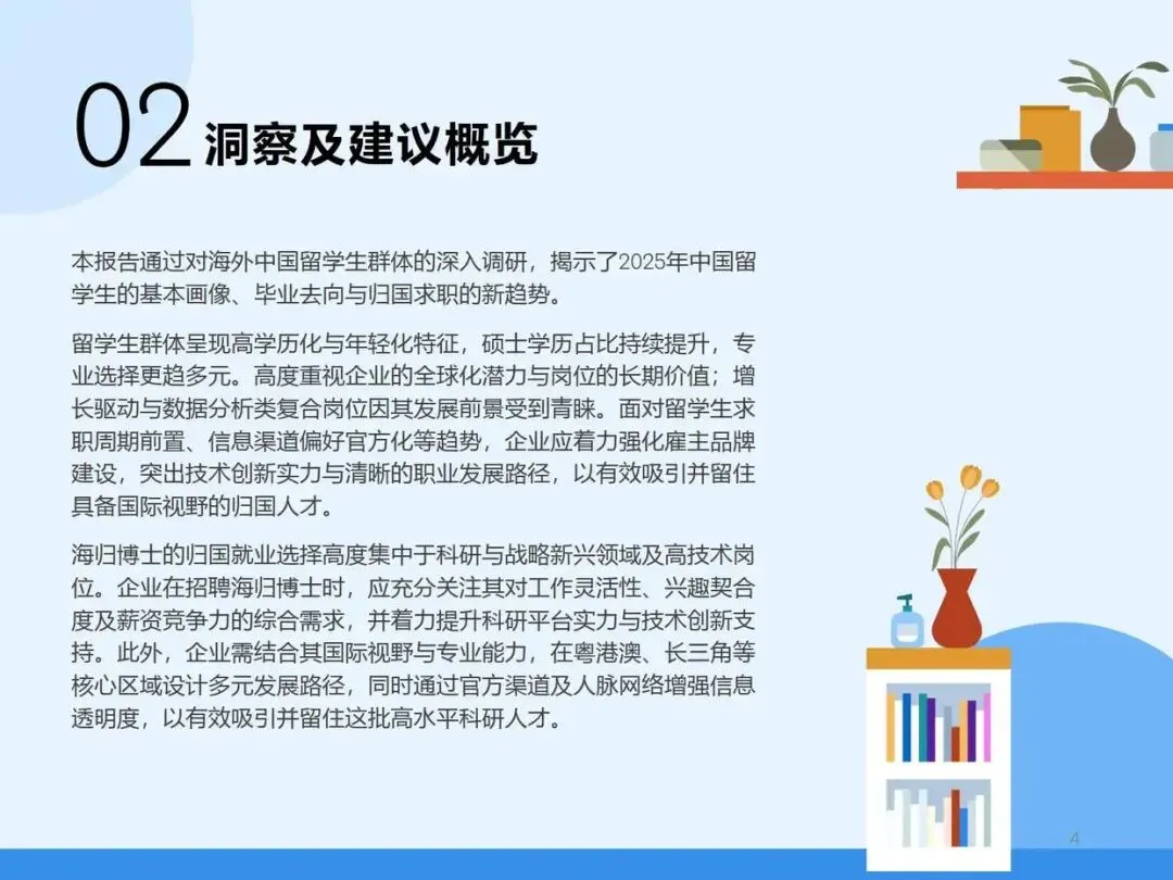 本报告通过对海外中国留学生群体的深入调研,揭示了2025年中国留学生的基本画像、毕业去向与归国求职的新趋势。