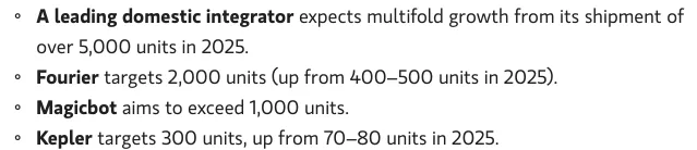 2026年出货量预期翻倍: 多数集成商预计2026年出货量将实现数倍增长,初期驱动力主要来自政府支持项目、研发机构及数据采集中心,同时各方正积极探索工业、商业服务等可规模化的应用场景 。