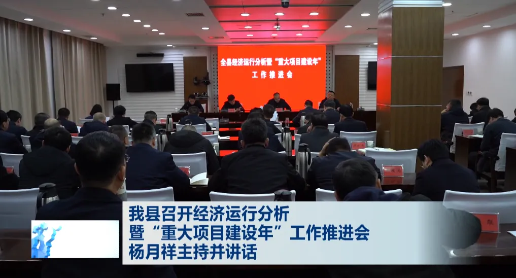 1月28日,我县召开经济运行分析暨“重大项目建设年”工作推进会,深入贯彻落实省市相关会议精神,总结2025年经济运行情况,分析研判当前形势,部署冲刺一季度“开门红”及“重大项目建设年”重点任务。市人大常委会副主任、县委书记杨月祥主持会议并讲话,县委副书记、政府县长王成君安排部署工作,县领导李利民、曹俊芳、杨旭、王建福、武丽云、李海斌出席会议,县直有关部门作了汇报。