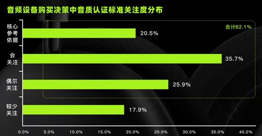 设备选购中,音质表现成为首要决策因素。超6成用户详细对比音质参数,对音质的认知愈发专业,“声音本身的质感”成为付费决策的核心基础。由此,带有权威认证标识的音频设备愈发受青睐,成为用户决策的“重要信任锚点”。