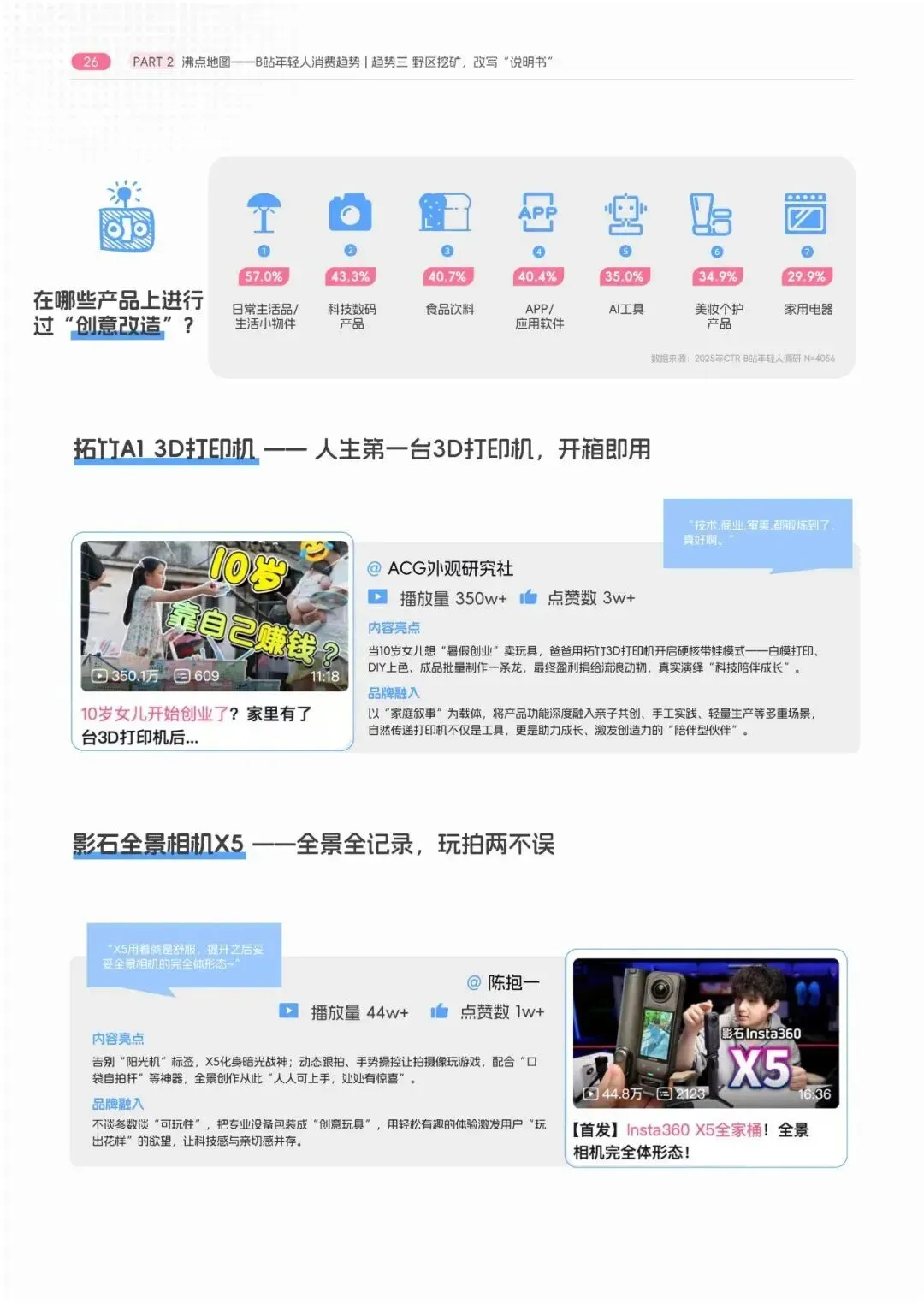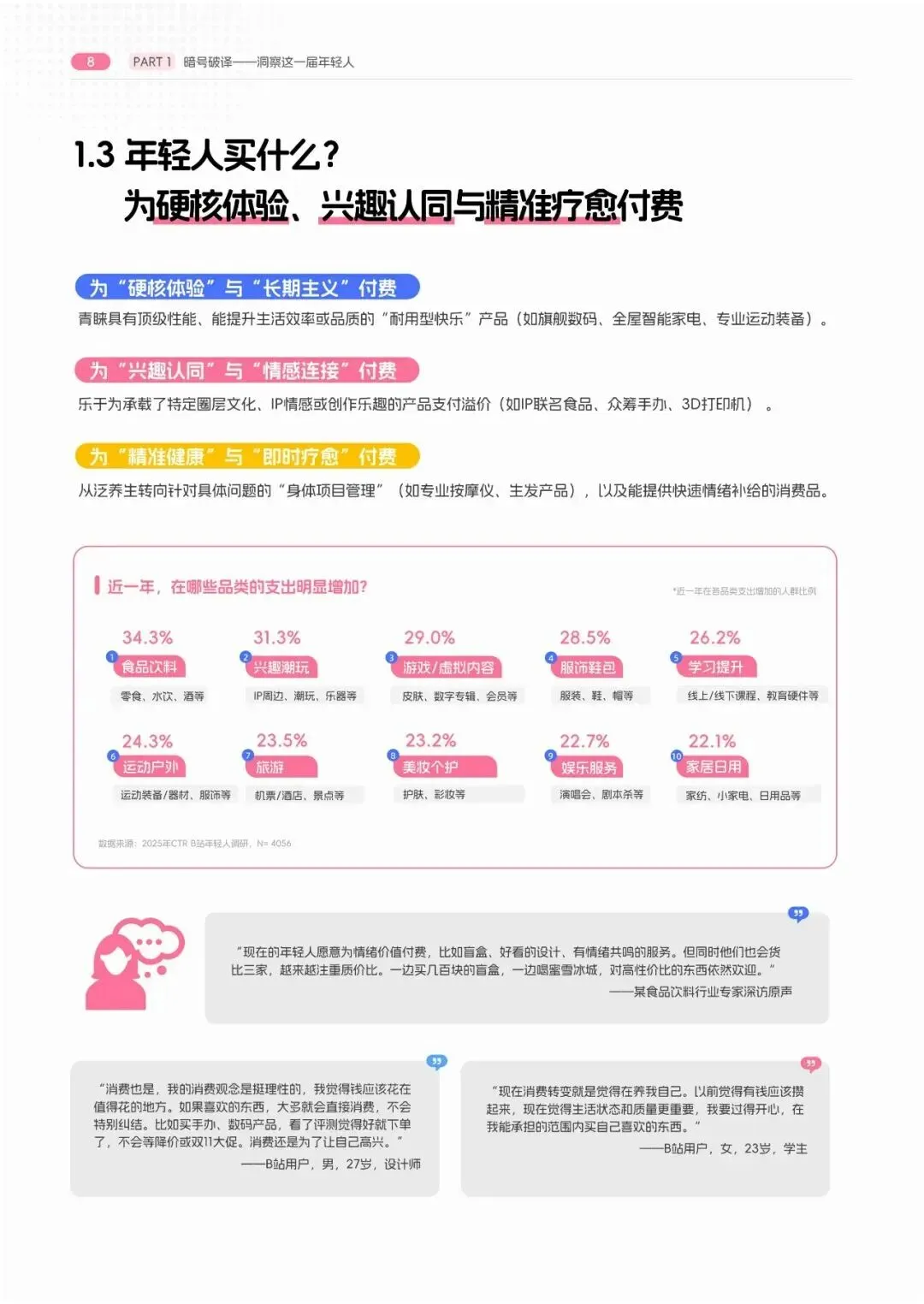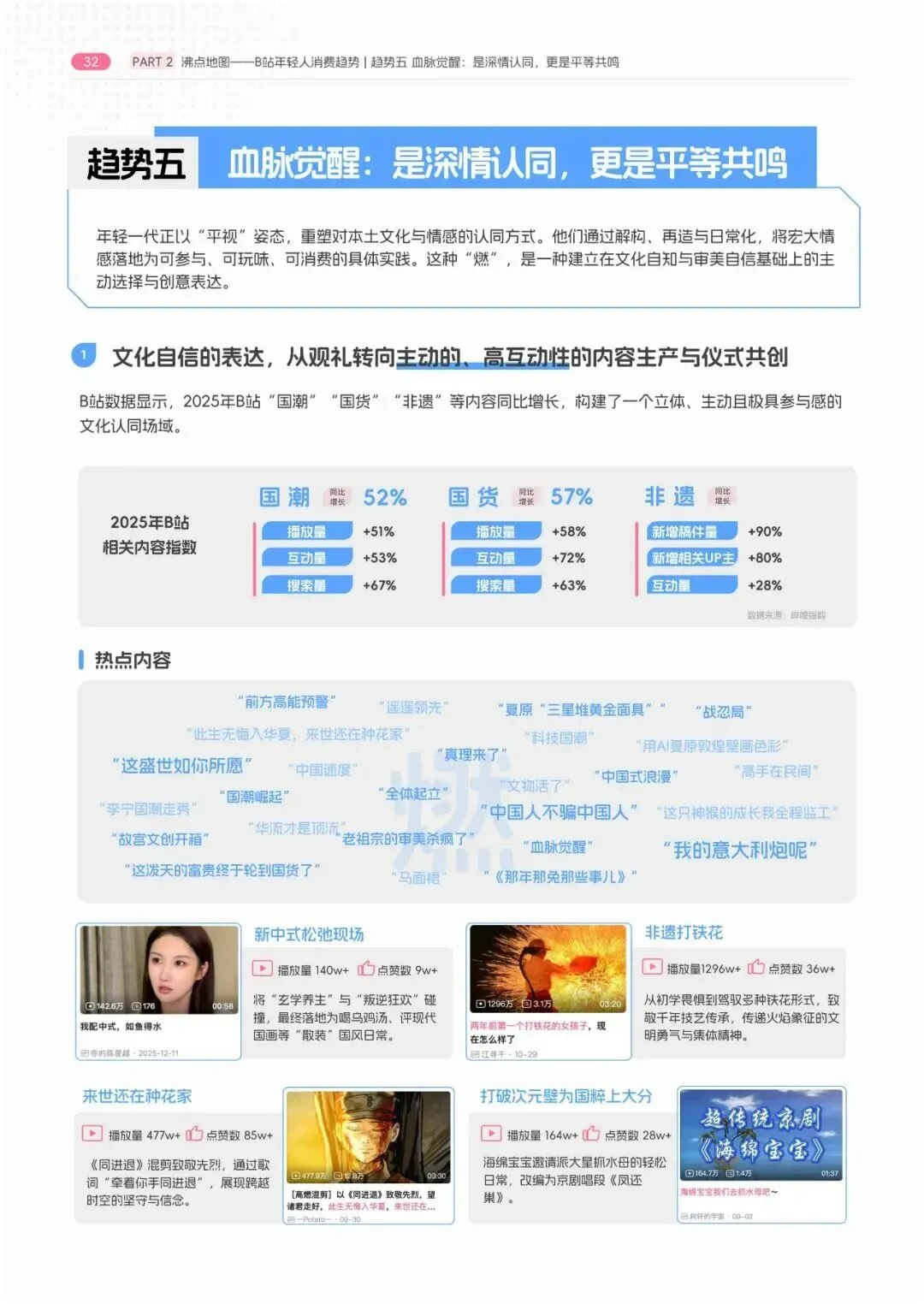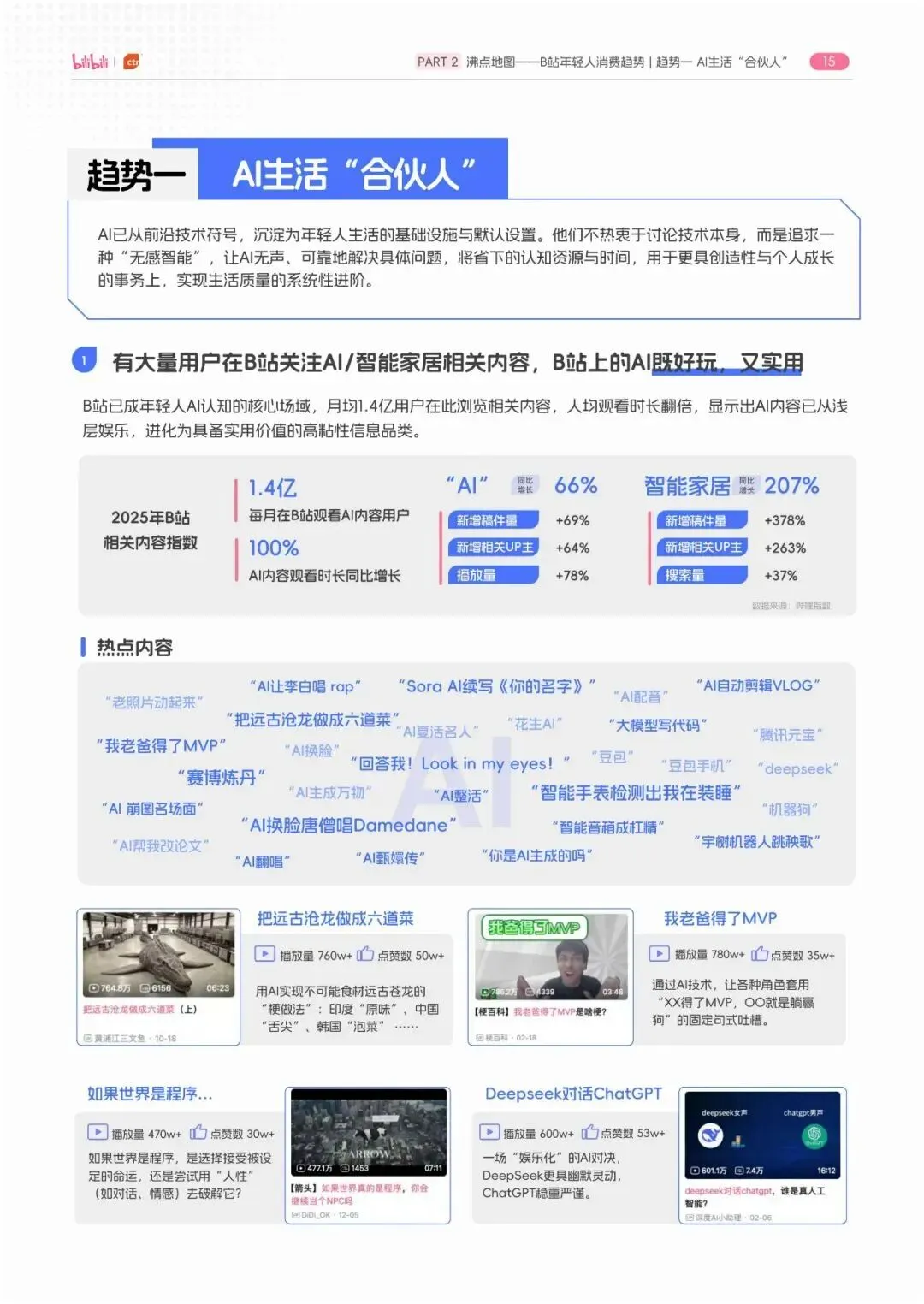 报告通过对2025年B站热点内容的分析,挖掘出当代年轻人三大共性深层需求:获取解决方案的工具理性、寻求共鸣的价值认同、管理情绪的精神安放。这些需求是品牌洞察年轻心智、建立消费共识的关键要素。