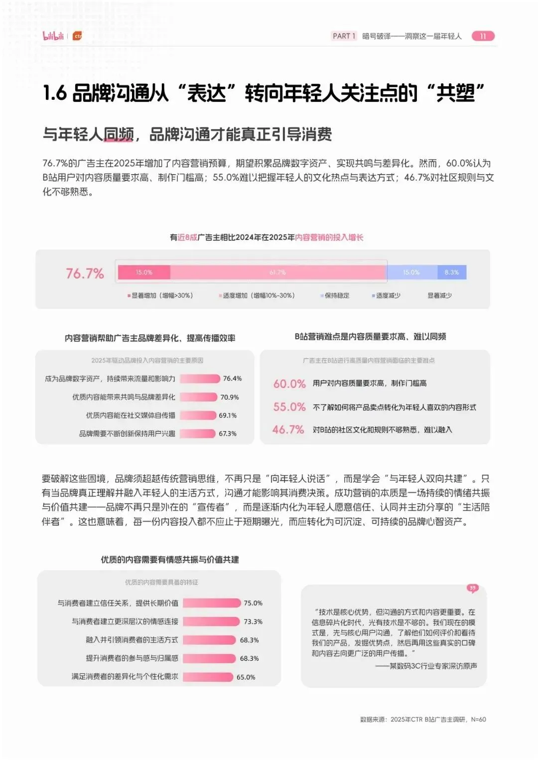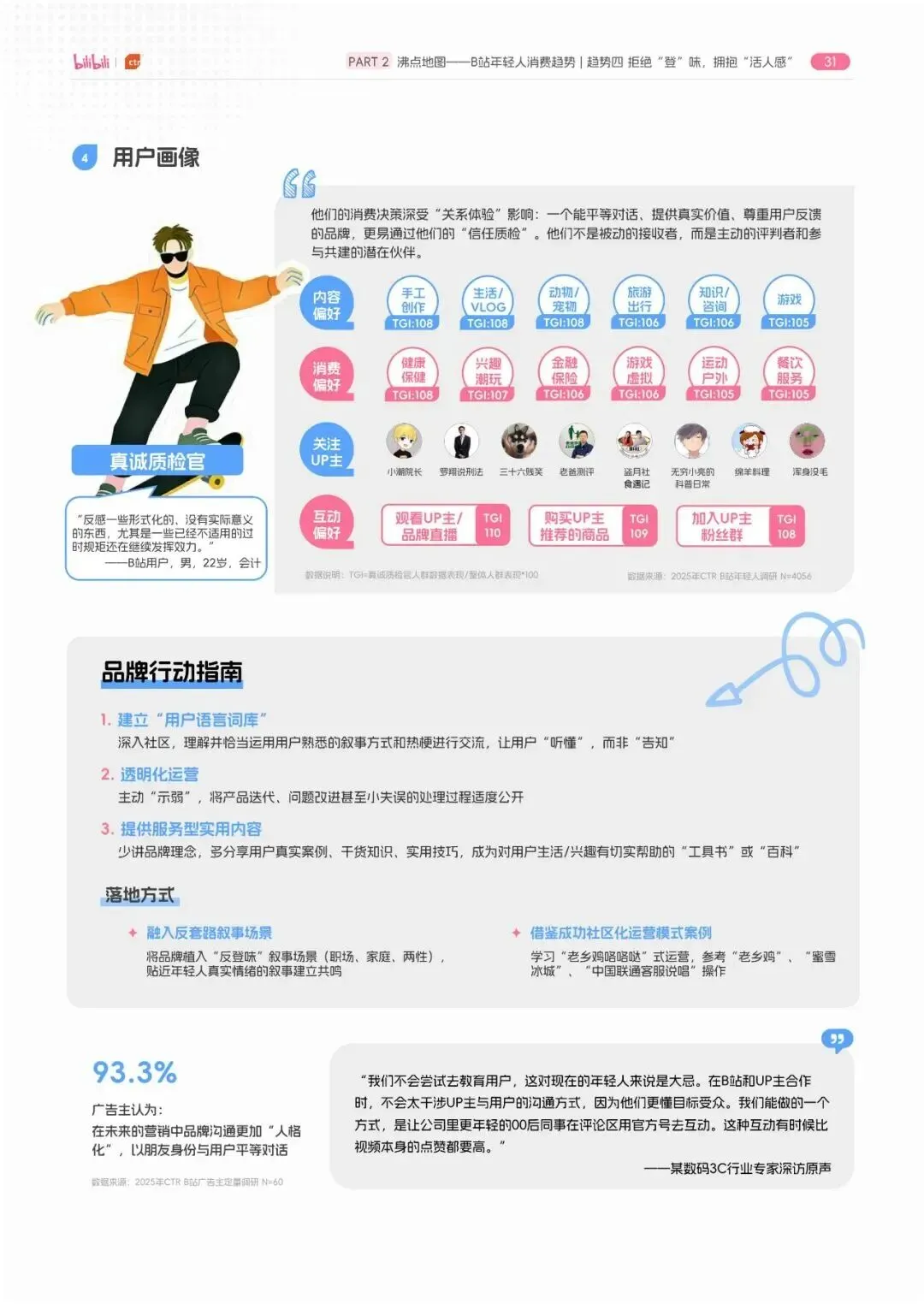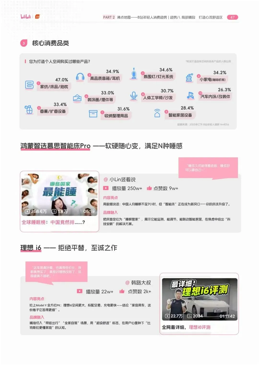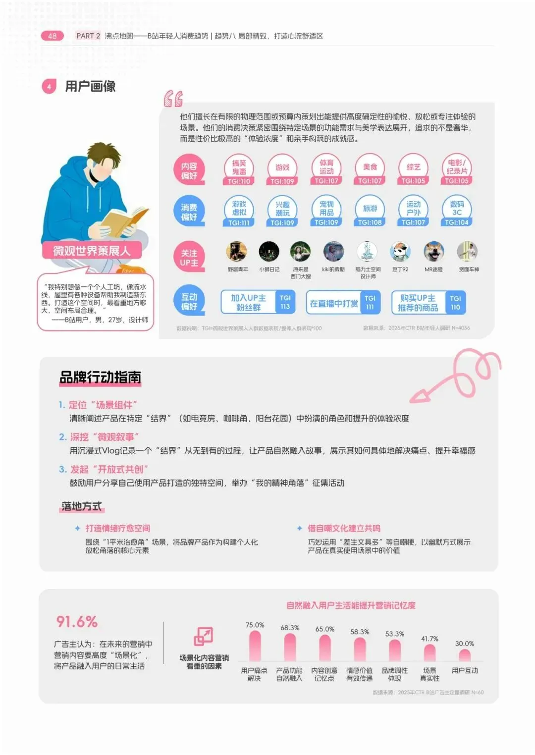 报告通过对2025年B站热点内容的分析,挖掘出当代年轻人三大共性深层需求:获取解决方案的工具理性、寻求共鸣的价值认同、管理情绪的精神安放。这些需求是品牌洞察年轻心智、建立消费共识的关键要素。