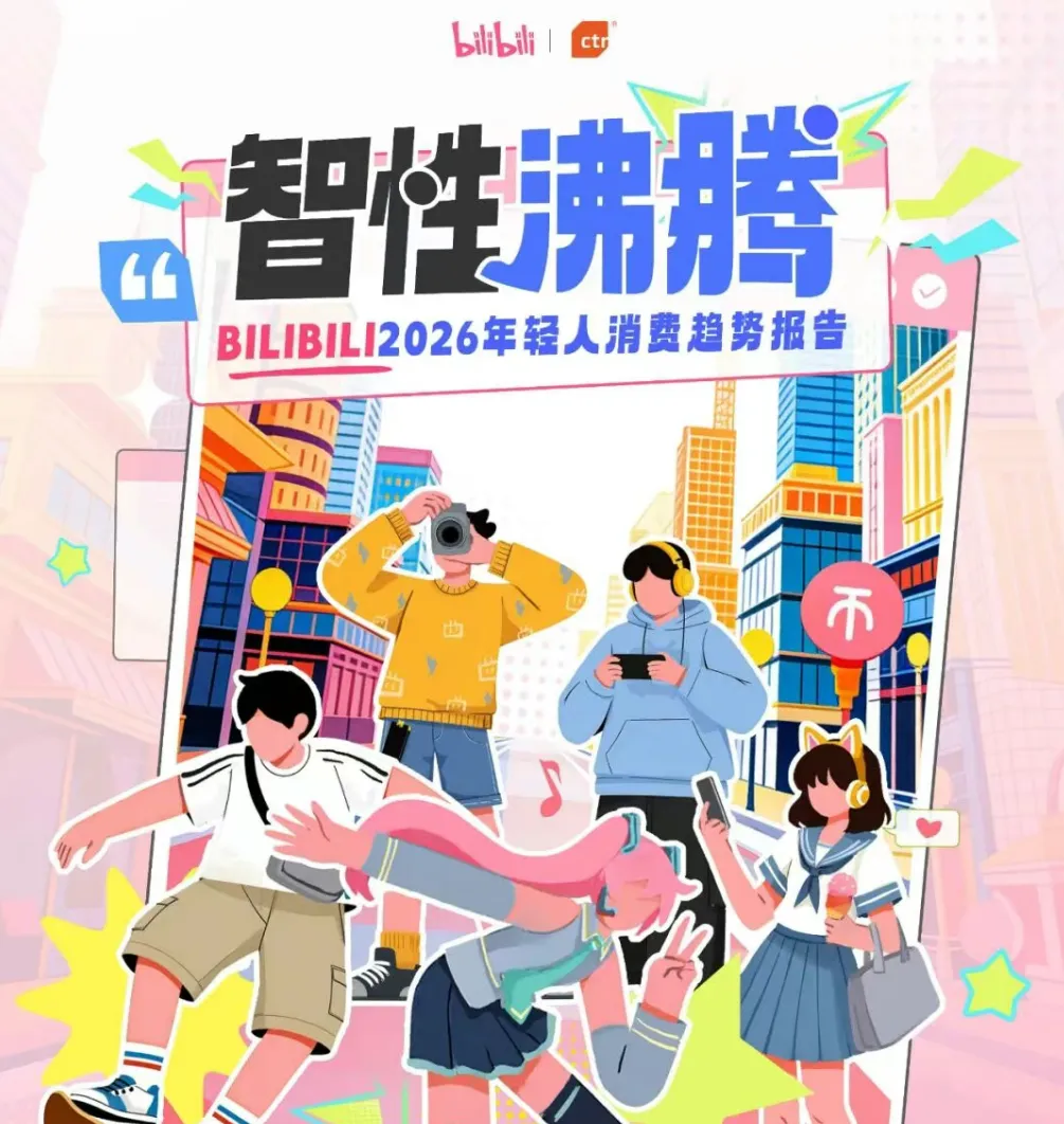 哔哩哔哩(B站)联合央视市场研究(CTR)正式发布年度《BILIBILI2026年轻人消费趋势报告》,报告提出“智性沸腾”这一核心概念,洞察了当代年轻消费者的心智变迁与行为逻辑——如今的年轻人正以清醒的认知和丰沛的情感,通过消费为自我认同的价值投票,构建起以“赛博合拍”、“反骨共创”和“安顿自我”为核心的全新消费图景。