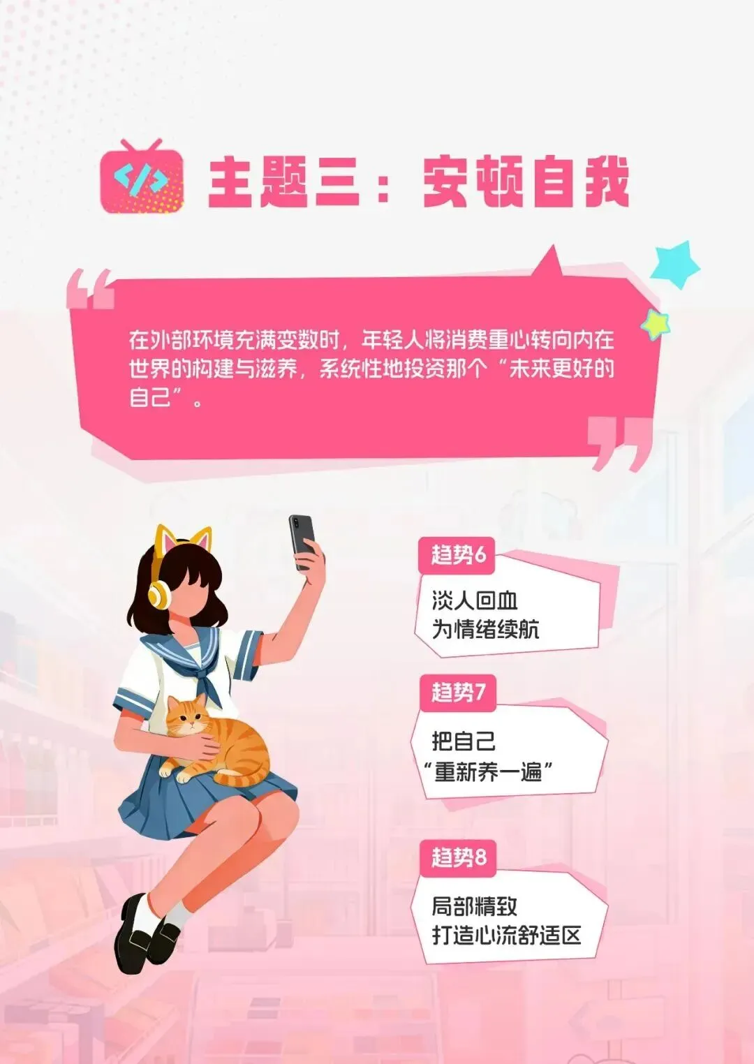 基于这三大消费方向,报告进一步提炼出八大“沸点”,既全面呈现了当代年轻人关注的内容热点与消费趋势,也为品牌寻找与年轻人的共同话题、共塑新的消费心智,提供了详实的趋势图鉴。