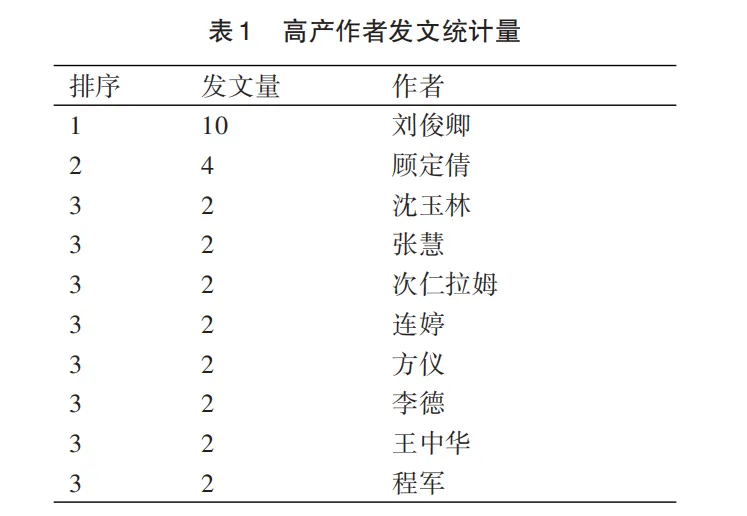 从检索到全部文献的作者中,最多的是沈阳师范大学教育科学院的刘俊卿教授,研究方向是特殊教育学校职业教育,共发表10篇。排名第二的作者是北京师范大学教育学院分党委书记、教育学院副院长顾定倩。并列第三的作者有《现代特殊教育》编辑部的沈玉林主编、南京市秦淮特殊教育学校校长张慧、贵州师范大学教育学院教授王中华、西藏那曲市特殊教育学校校长次仁拉姆等(见表1)。