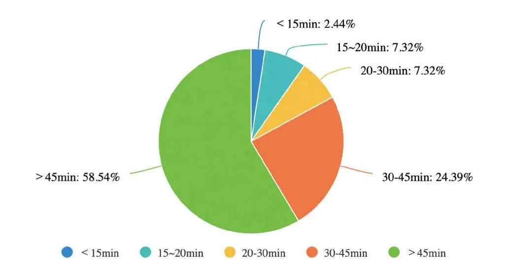 关于每次换单时间(含清洗、调压、套准、调色、签样),由于调研设计的选项上限是45min,如图6所示,因此未能拉开数据差异。回顾过去几年的历史数据,大部分换单时间在1.5~2.5h之间。但我们也看到,超过40%的受访企业能在45min内,甚至更短时间内完成换单。最出色的企业平均换单时间小于15分钟。例如近期参观过一家印刷企业生产现场,更换四个专色(CMYK不换)仅需12分钟,这种换单效率非常惊人。