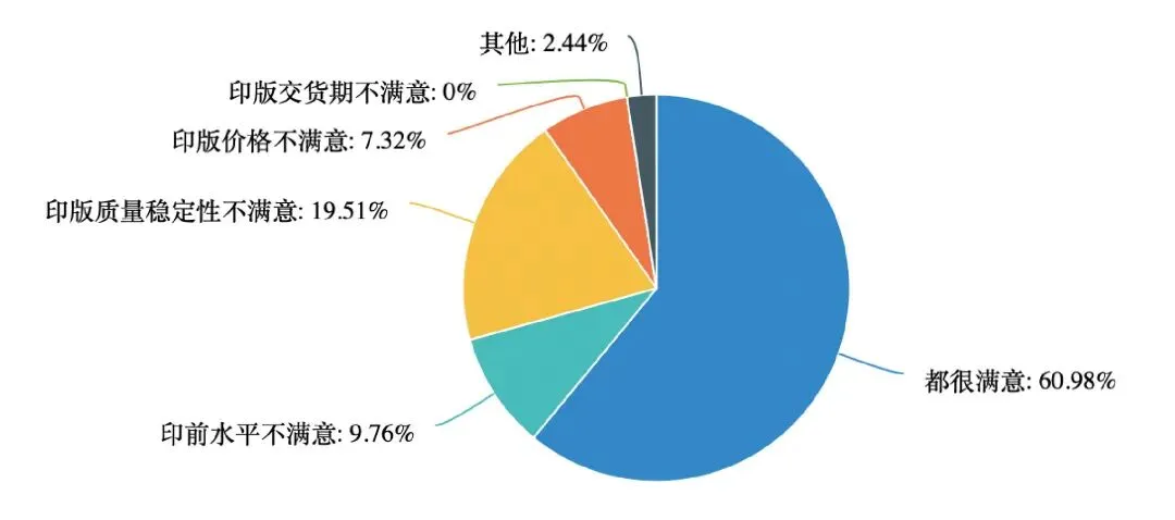 如图8所示,2025年印版供应商的满意度评分下降了,满意的占比2024年为62%,2025年为61%。相关企业可能需要审视自身是否存在问题。