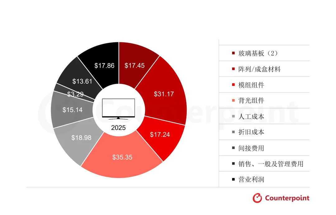 2025年55英寸UHD 60Hz电视面板成本拆分