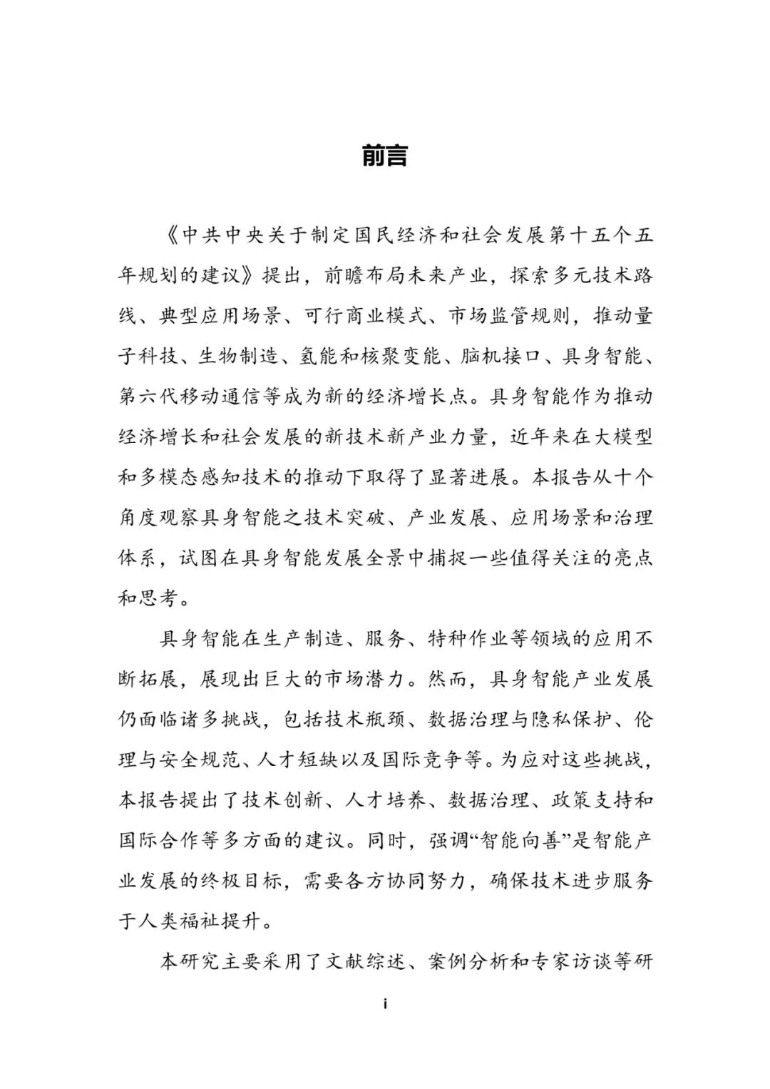 本研究主要采用了文献综述、案例分析和专家访谈等研究方法。通过对国内外相关文献的梳理和分析,展示具身智能产业发展历程、现状和趋势;通过对典型企业和项目的分析,探讨具身智能产业的商业模式、技术创新和应用实践;通过对行业专家的访谈、分享和报道,获取最新行业信息和专业见解,为深入研究分析提供有力支持。