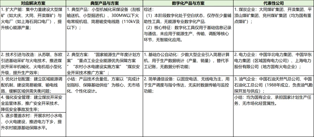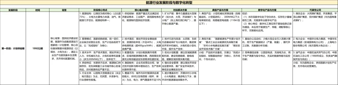 字段: 发展阶段 时间 背景 阶段核心特点 核心痛点问题 对应解决方案 典型产品与方案 数字化产品与方案 代表性公司