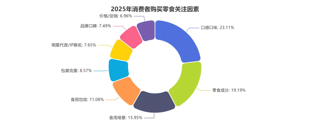 功能性需求增长消费者购买零食时关注"食用功效"的占比达33.9%[10]。功能性零食作为休闲零食的细分赛道已成为刚需市场,潜力很大[19]。
