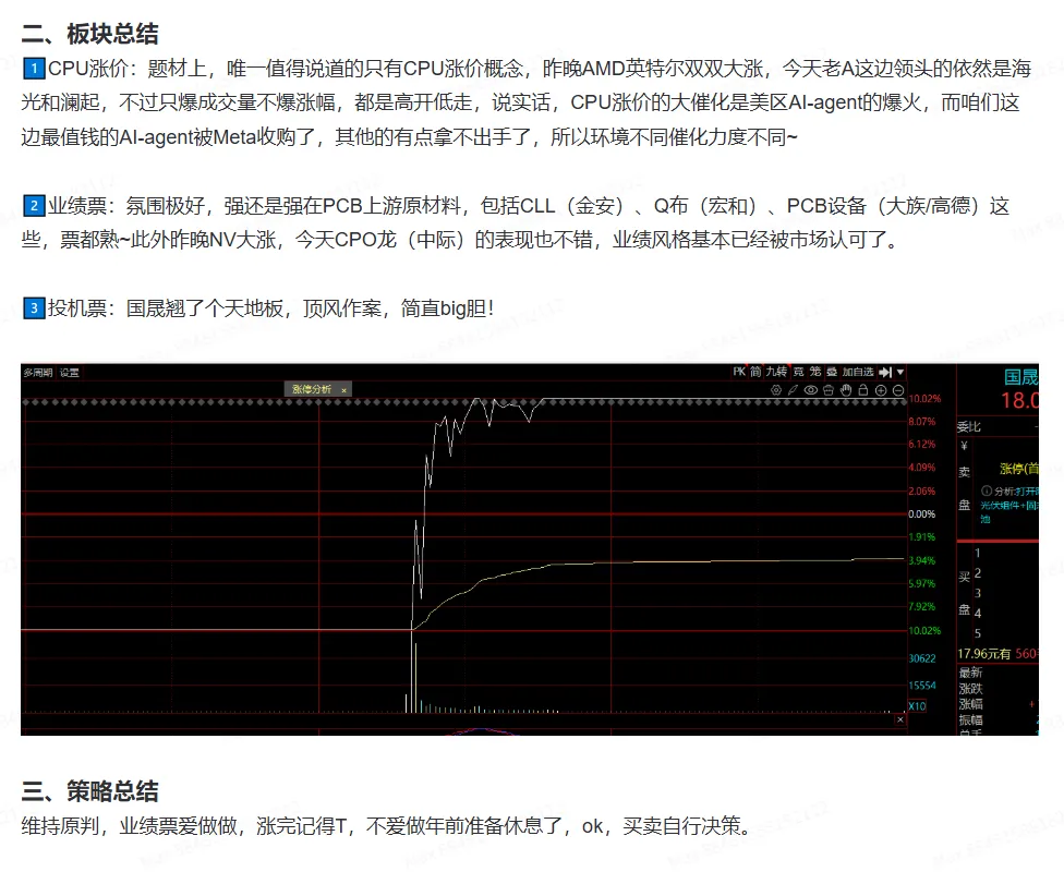 另外昨天的金安受益CLL涨价今年一字板走出断层,同理受益的相关公司走的也很不错,业绩风格真的是顺风顺水,我最近仓内几乎每天都有板的,珍惜年前抑制投机的时光吧~