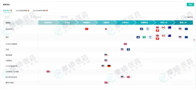 Elinzanetant(更年期治疗):Elinzanetant是非激素类NK-1,3受体拮抗剂,基于摩熵医药数据显示,Elinzanetant在2025年获得美国、欧盟批准上市,预计将成为拜耳在女性健康领域的下一个重磅炸弹,填补激素替代疗法的市场空缺。
