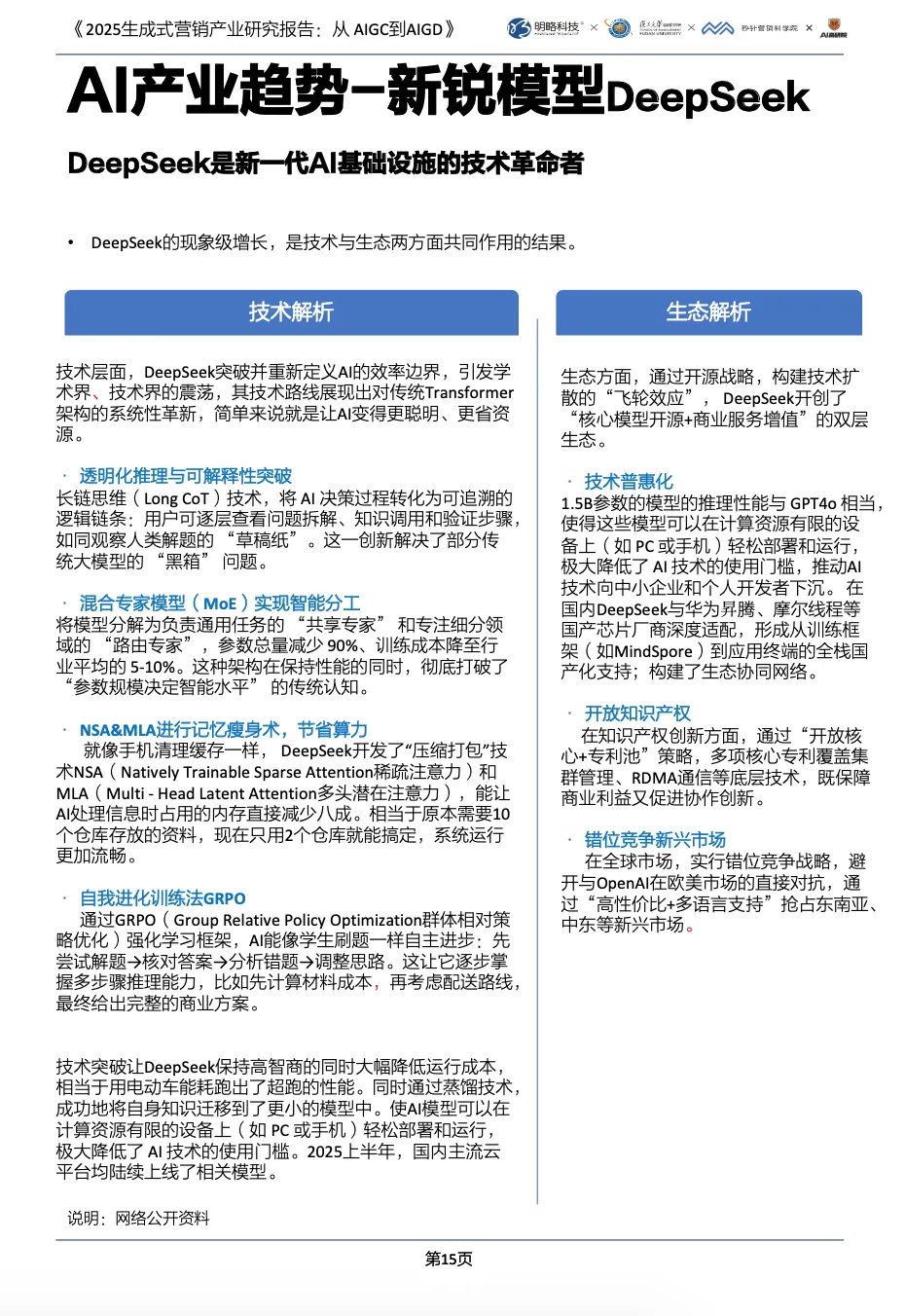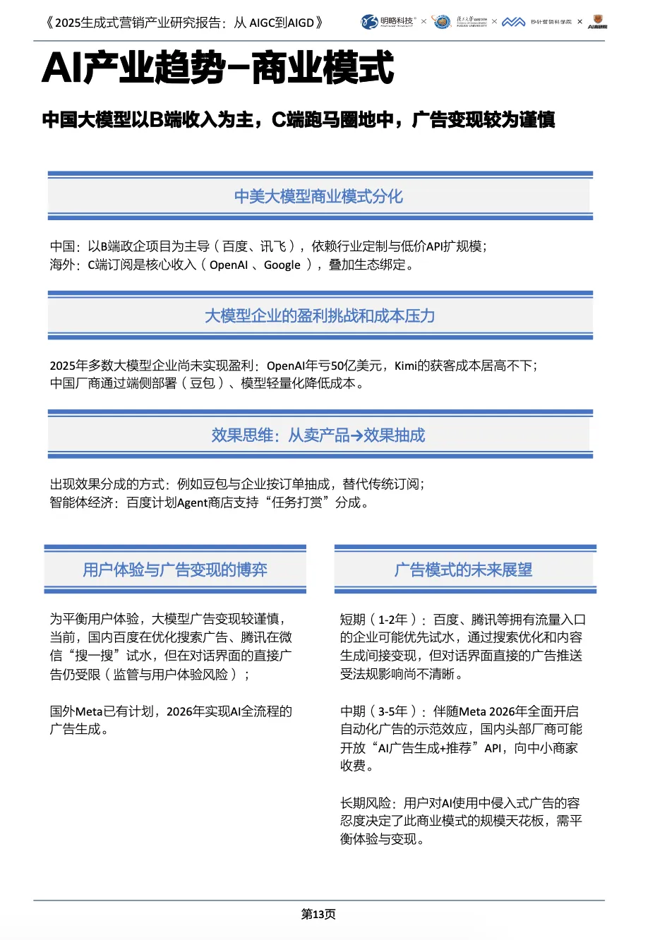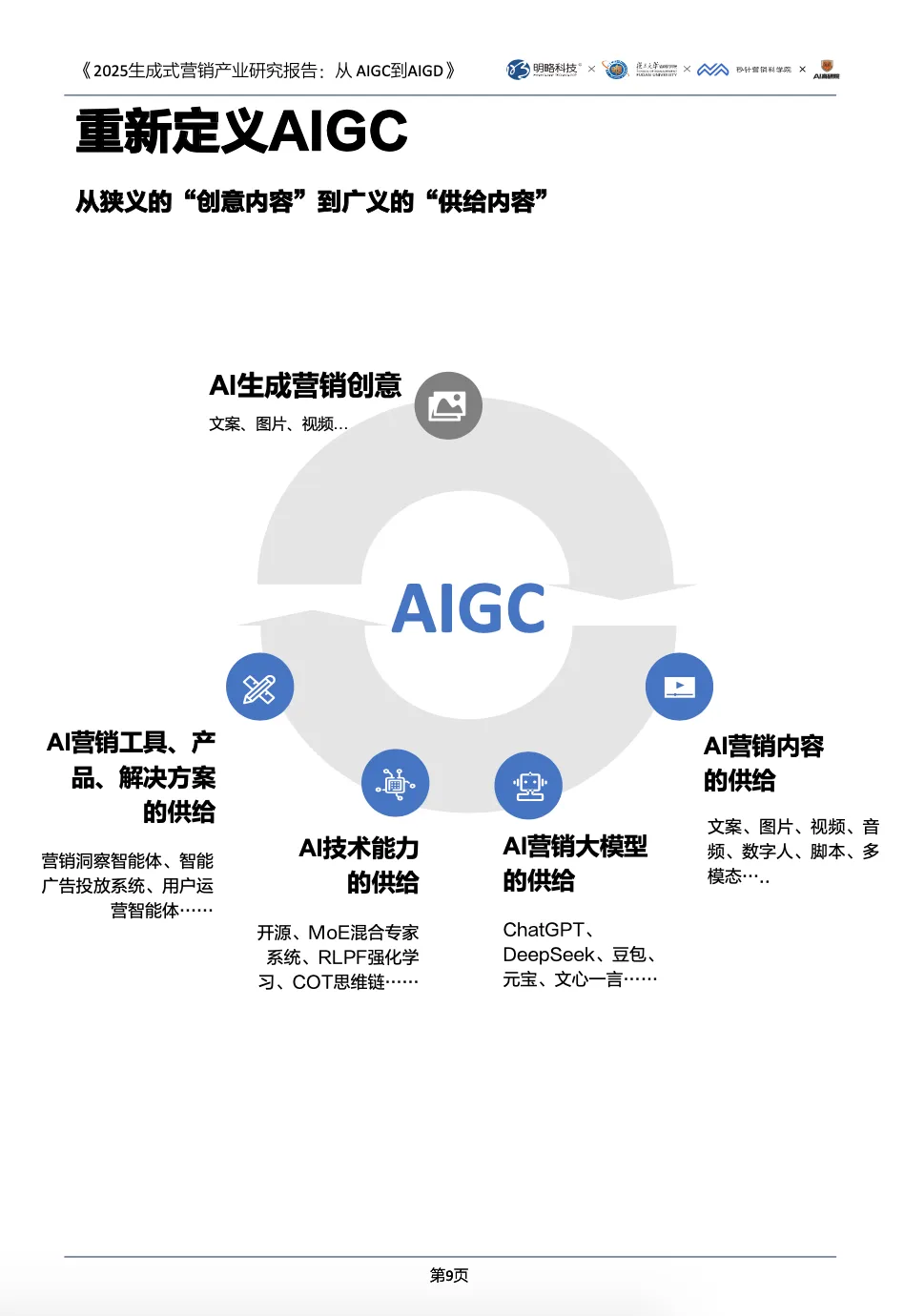 该报告聚焦 2025 年#生成式营销 产业,核心围绕 #AIGC(营销供给)与 #AIGD(营销决策)展开,呈现产业从 “可行性探索” 到 “规模化落地” 的转型,分析技术趋势、应用实践及行业案例,为企业提供战略与战术指引。