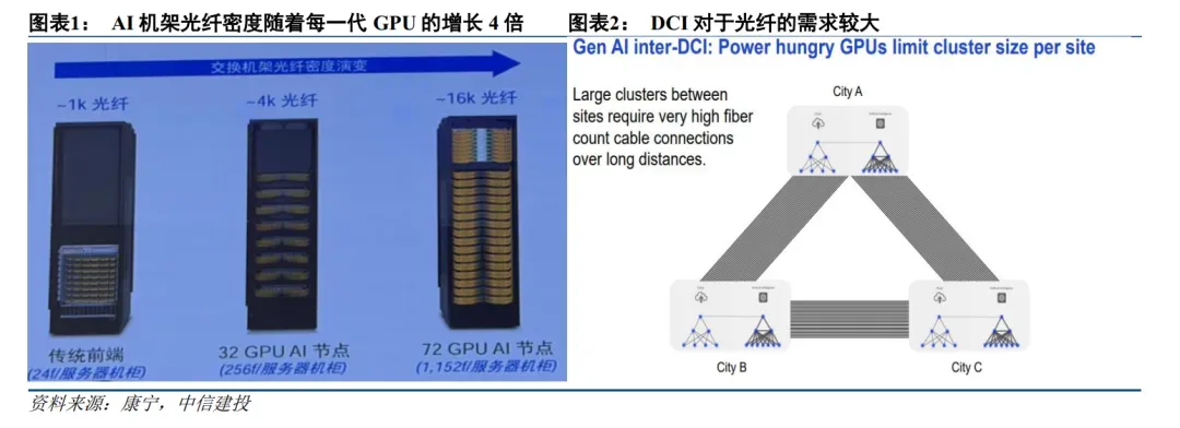 我们预计由AI等带来的光纤需求将持续较快增长:一是考虑到全球光模块需求量在2026年仍将大幅增长,则对应光纤需求也将随之增长(主要为Scale out需求);二是预计2027年左右Scale up的光纤需求可能起量,康宁展望Scale up的需求量将是现有企业网业务的2-3倍;三是Sacle Across也将带来大量的需求。