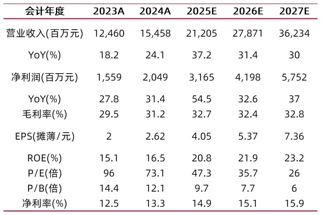 公司发布2025年全年业绩快报,预计2025年全年实现营收212.05亿元,同比+37.18%;预计实现归母净利润31.63亿元,同比+54.35%。预计Q4单季度实现营收73.8亿元,同比+46.1%;实现归母净利润9.7亿元,同比+74.1%。