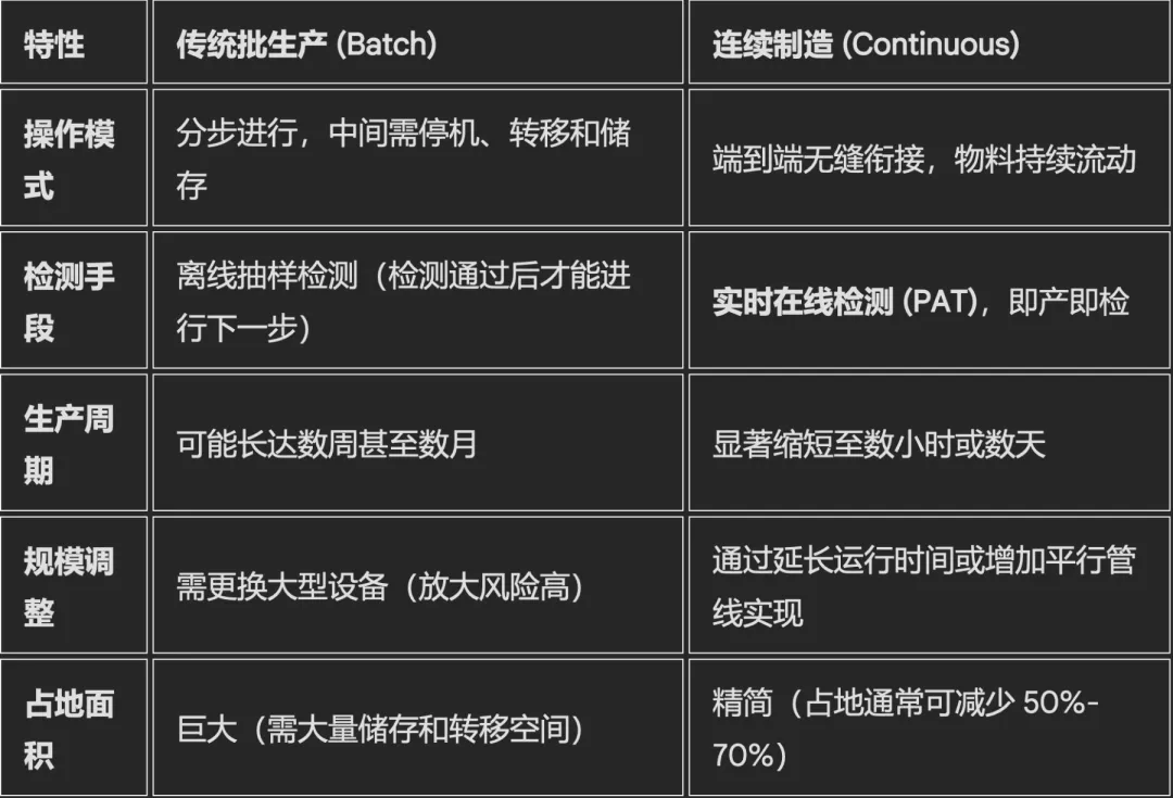 全球制药行业目前正处于从传统的批次制造(Batch Manufacturing)向连续制造(Continuous Manufacturing, CM) 转型的关键历史节点。这种转型不仅是生产工具的更新,更是制药工业质量管理哲学、供应链逻辑以及商业模式的系统性革命 。在过去的半个多世纪中,制药业长期依赖于离散的批次生产模式,物料在不同的单元操作之间停顿、存储并进行离线质量检测,这导致了极长的生产周期、大量的中间库存以及批次间难以避免的质量波动。随着“制药工业4.0”概念的提出,连续制造被公认为实现智能化、数字化和高效化生产的核心路径。