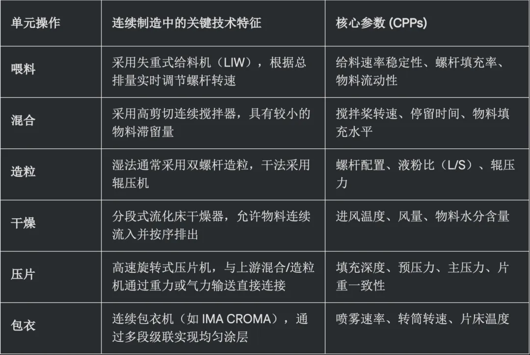 例如在口服固体制剂(OSD)的连续制造线中,生产流程通常从原材料的精准喂料开始,随后经过混合、造粒(可选)、干燥、压片和包衣等一系列集成步骤。