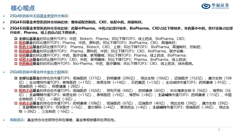 ØQ4公募基金整体和全基医药重仓持仓均创18年以来新低: