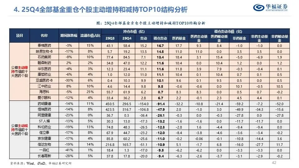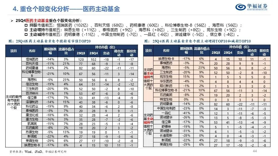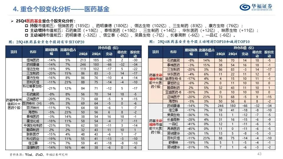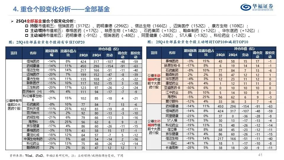 Ø25Q4医药板块基金持仓重仓个股情况: