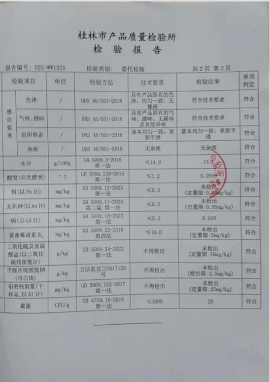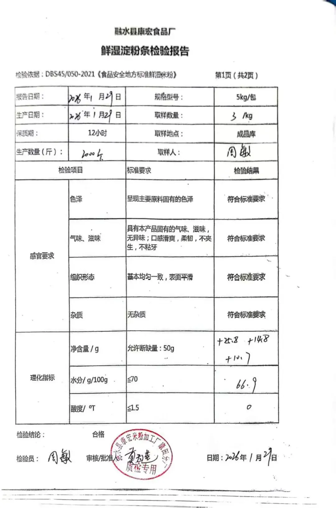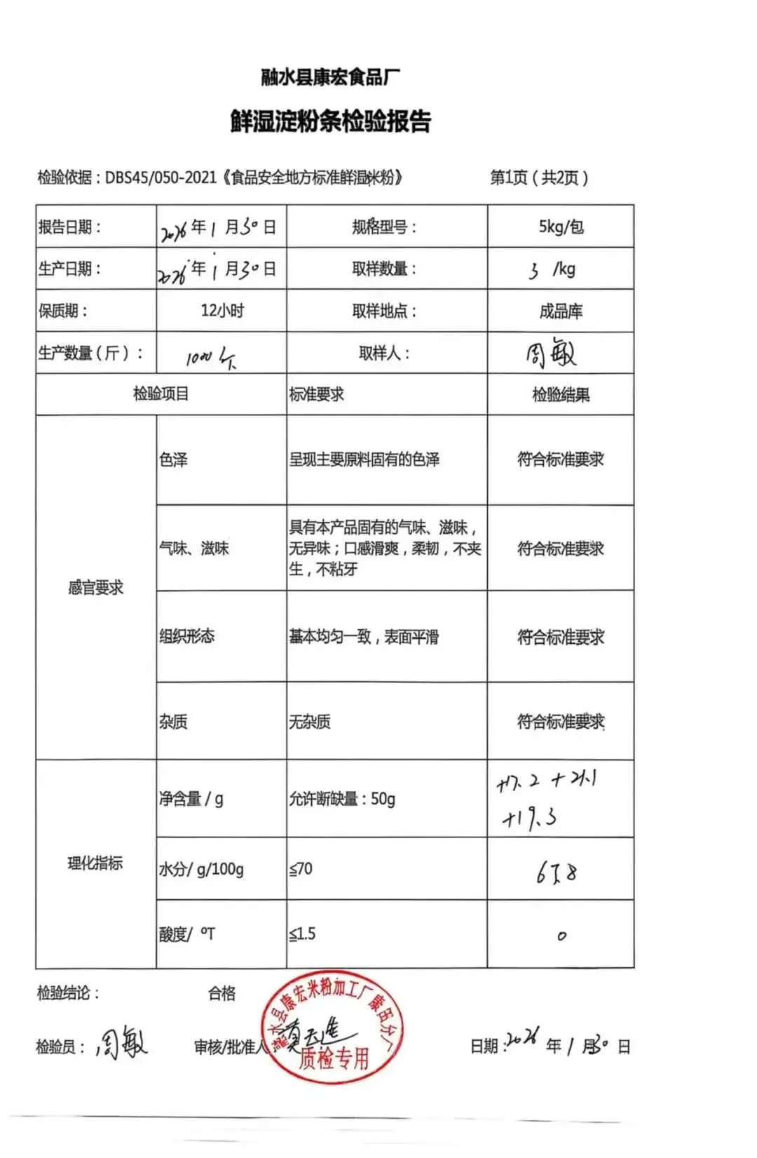 蛋类、肉类、蔬菜、鲜湿淀粉条检测报告