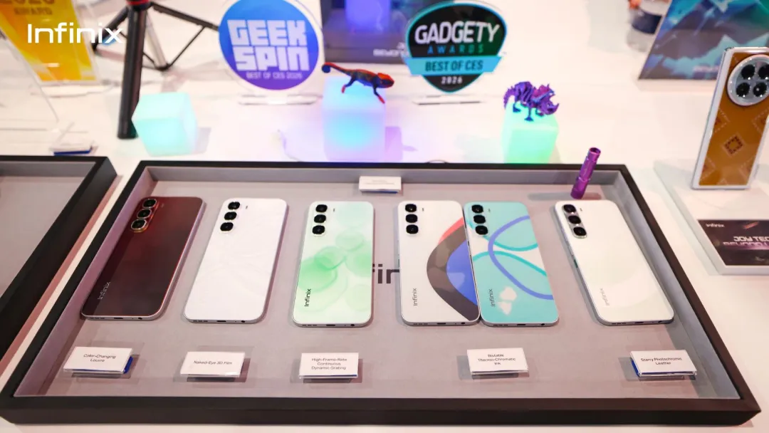 在2026 CES展上,传音旗下Infinix推出了NOTE 60系列手机,这款机型将色彩及图案设计与智能科技相结合。通过Active Visual Backplate技术实现了彻底的革新。通过诸如变色光栅、高帧率连续动态光栅、裸眼3D膜等精密微光学结构,对反射光进行主动调控,实现随视角与环境变化而变化的背板设计。用户只需旋转手机,即可在背盖上观赏流动的色彩、生动流畅的动画或迷人的3D立体图像。这种“动态”设计满足了用户进行深度个性化设置的需求,并且无需额外消耗电量。