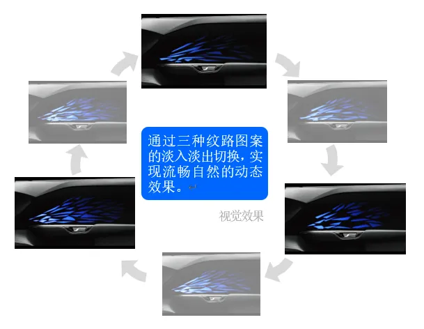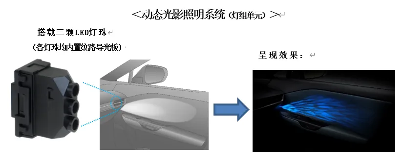此次推出的新方案进一步实现了技术突破:通过控制三组灯光的交替切换,能够在车门内饰板上呈现出光影微微摇曳的简易动画效果。这一创新设计旨在提升乘客的感官体验,为营造舒适愉悦的车内空间环境提供了新的解决方案。