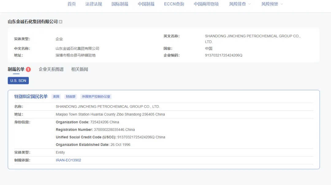 山东金诚石化集团有限公司被指自2023年起购买数百万桶伊朗原油;