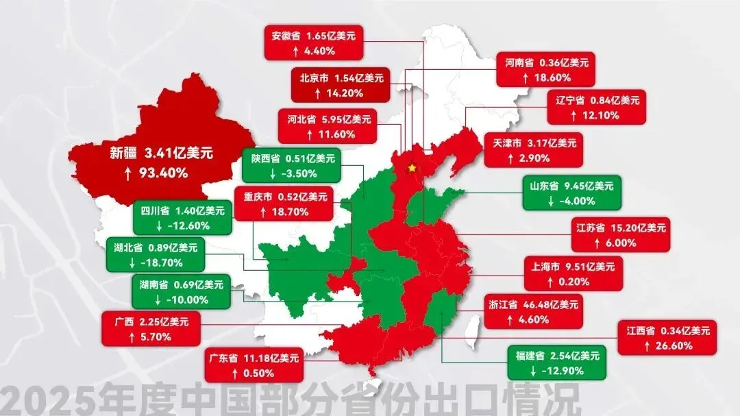 中西部与沿边省份正成为行业规模扩张的主战场。 河北出口额同比增长11.6%,新疆更是实现了93.4%的惊人增长,主要受益于“一带一路”通道经济效应。