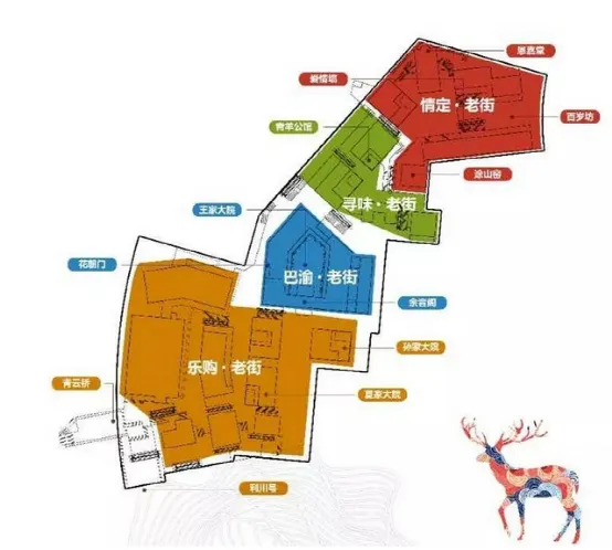 老街致力将文化与场景深度融合,打造了4个主题街区:乐购老街、巴渝老街、寻味老街、情定老街。每个主题街区都有故事可讲,有文化源头可溯。同时老街还打造文艺地标集群,国家级文物高宅•法国水师兵营,浪漫教堂一德堂,四合院里的书店-大众书局,西南首个艺术影院先锋艺术影院,全球顶级IP“熊本”的中国首家全业态旗舰店KUMAMOTO MILK TEA & STORE,网红气质文艺打卡地标一个接一个。