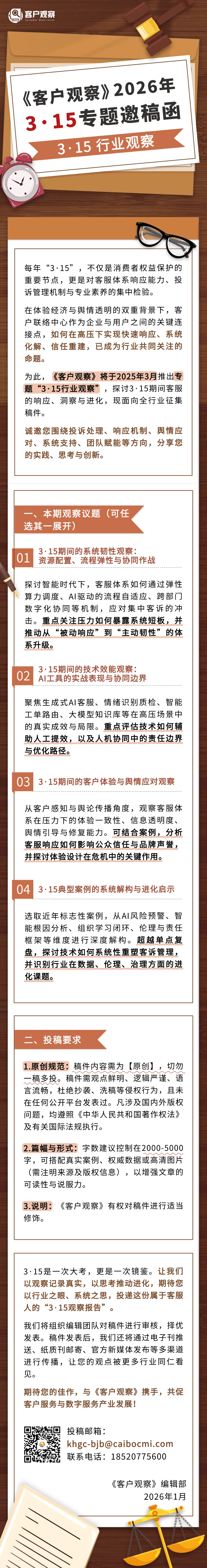 3·15行业观察——《客户观察》2026年3·15专题邀稿函