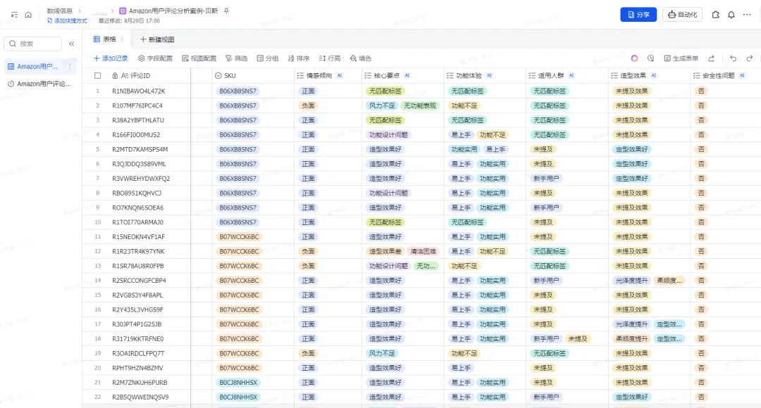 然后,AI就会自动阅读每一条评论,并为它们打上这些结构化的标签。