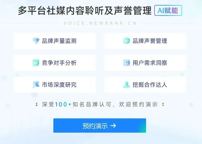 1.功能:综合评估品牌影响力指标(声量、互动量、传播效能等);监测负面舆情并实现分钟级预警;挖掘正向优质内容进行放大。