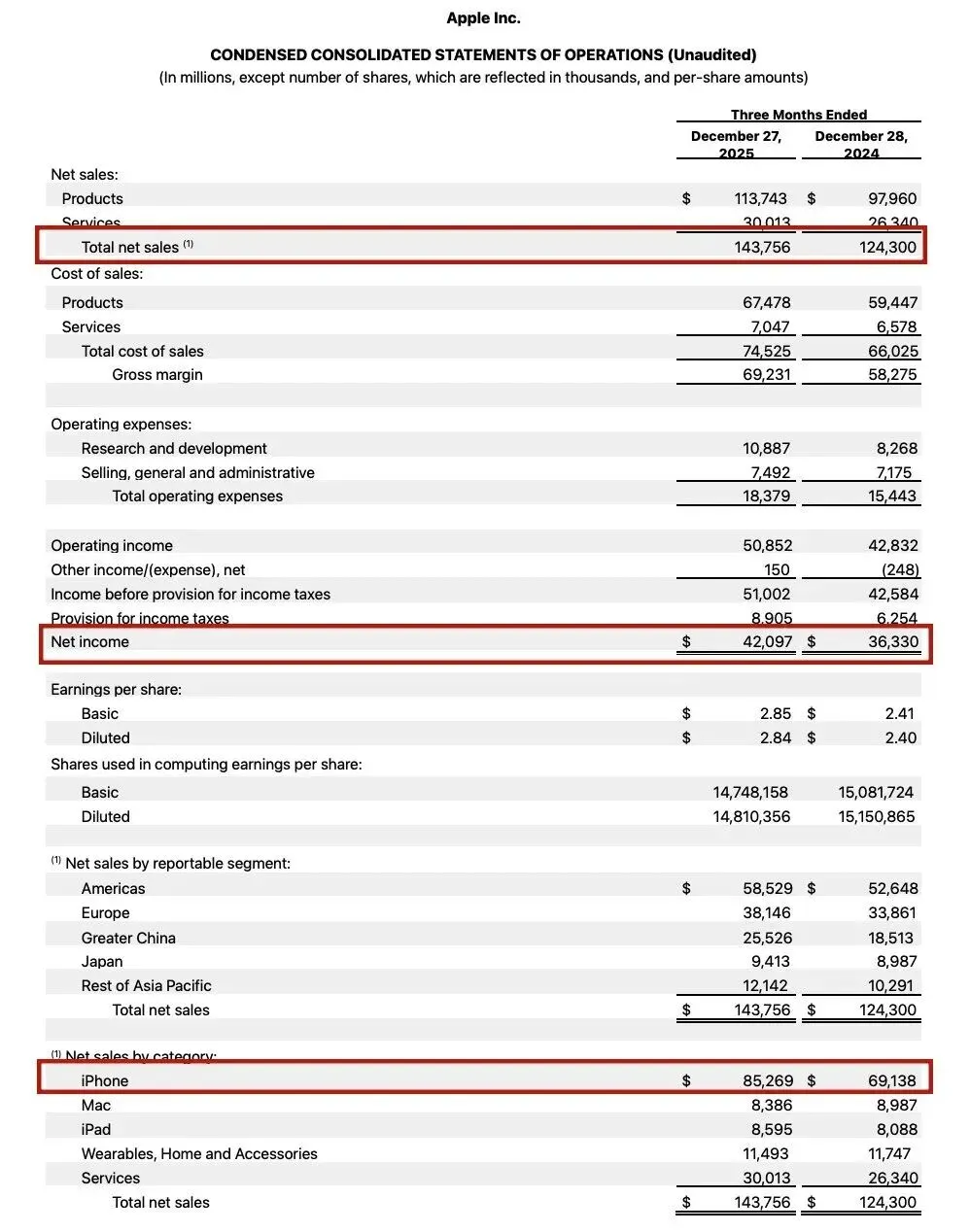 当地时间2026年1月29日,苹果发布2026财年第一季度(截至2025年12月27日)财报。在iPhone需求强劲、大中华区销售明显反弹的带动下,苹果当季营收和利润均大幅超出市场预期,多项核心财务指标创下历史新高。