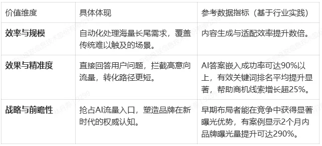 面对用户获取信息习惯的根本性迁移,AI关键词优化的价值体现在多个维度: