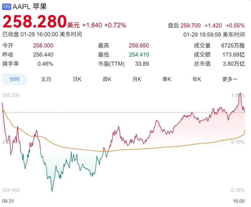 受此担忧影响,苹果股价今年以来累计下跌5%。截至发稿,苹果股价定格在258.28美元。