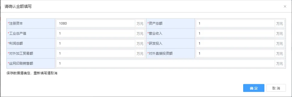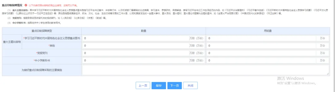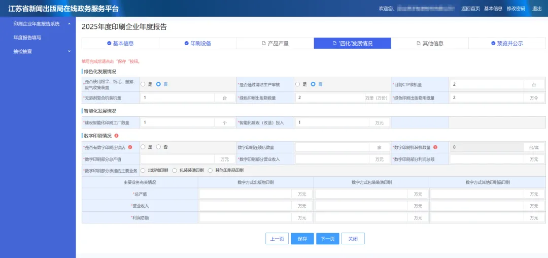 其中“数字印刷机装机数量”根据前面“印刷设备”模块中的数字印刷机数量自动带入,该页面不可修改此项信息。其他信息根据实际情况自行填写。