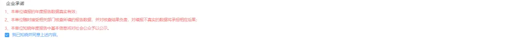 勾选“我已知晓并同意上述内容”,点击【确定】按钮,进入年报填写页面。