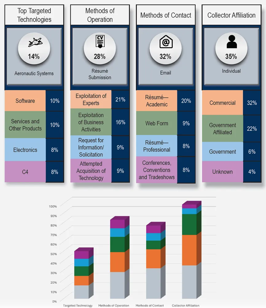 报告显示,“简历投递”(Résumé Submission)是东亚实体使用频率极高的手段之一。美方认为,许多来自该区域的学生和研究人员,试图通过申请进入美国高校或企业的敏感项目,来获取双用途技术。