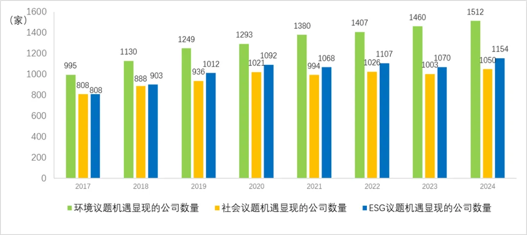 图:2017至2024年度ESG净价值为正值的香港上市公司数量