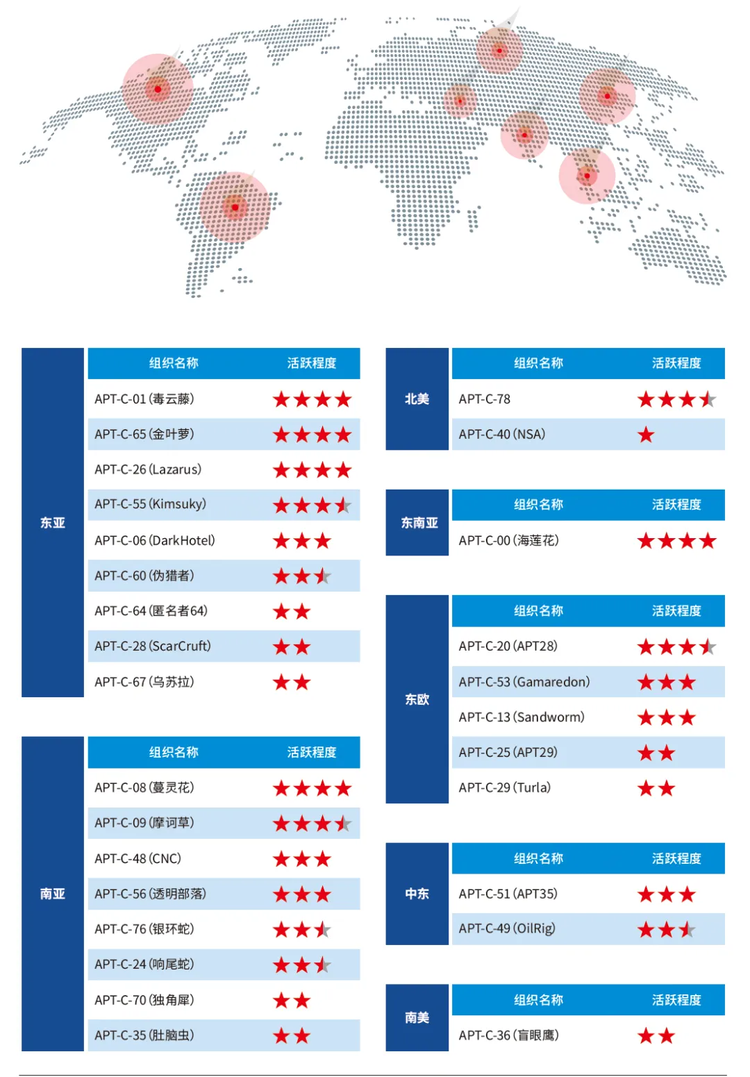 2025年,360再次捕获并披露了到4个全新APT组织,分别为北美地区的APT-C-78、东亚地区的APT-C-64(匿名者64)、APT-C-67(乌苏拉)和南亚地区的APT-C-76(银环蛇)。截⾄2025年底,360已累计率先发现并披露了60个境外APT组织。
