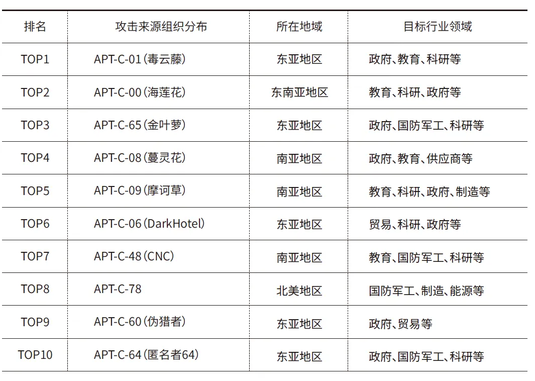 2025年我国受APT攻击影响单位行业分布TOP 10