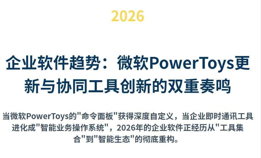 2026年的企业软件行业正处于一个关键的转折点。微软PowerToys的深度自定义能力,标志着个人生产力工具的智能化进化;而协同平台从"即时通讯工具"向"智能业务操作系统"的转变,则代表着组织协作模式的根本性重构。